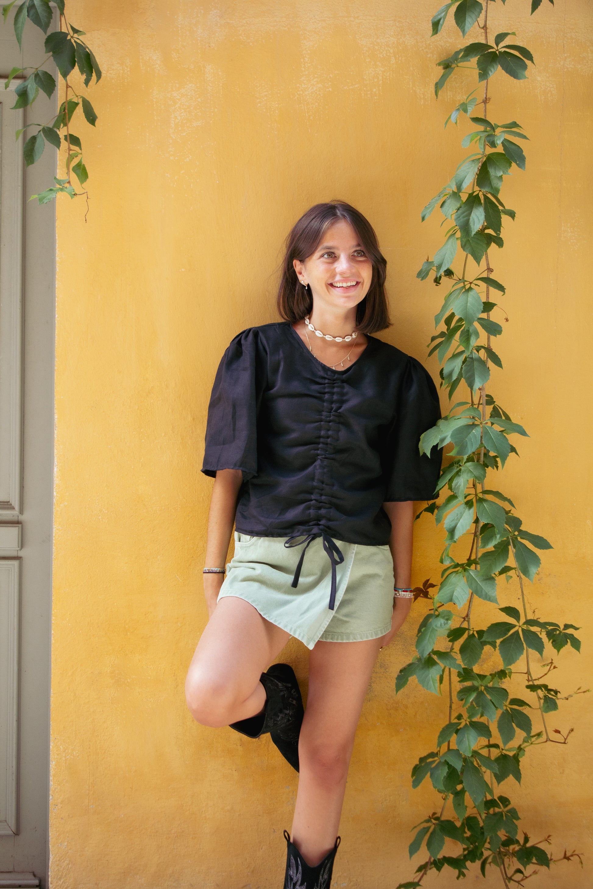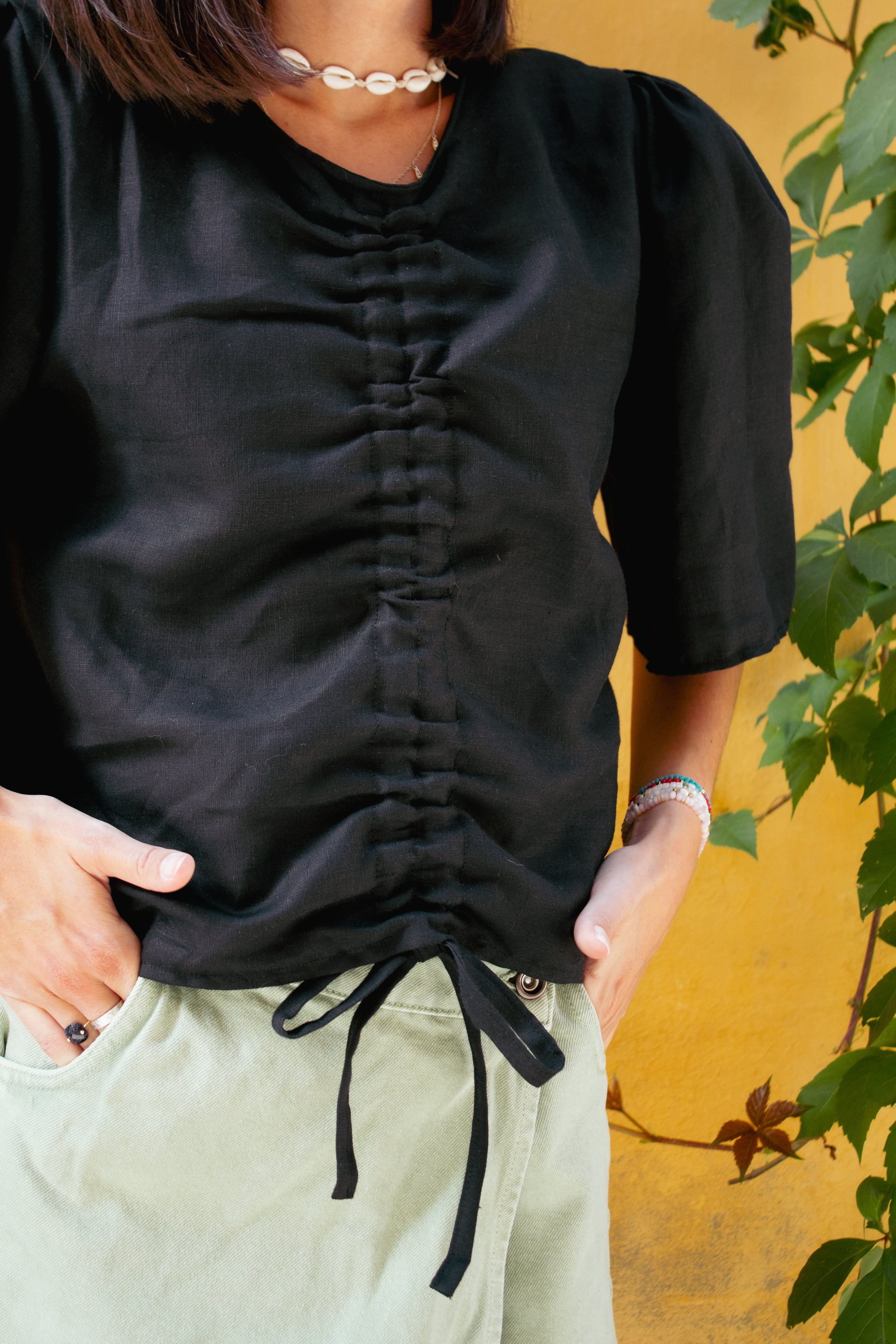 Deadstock linen, no overproduction for this linen blouse.