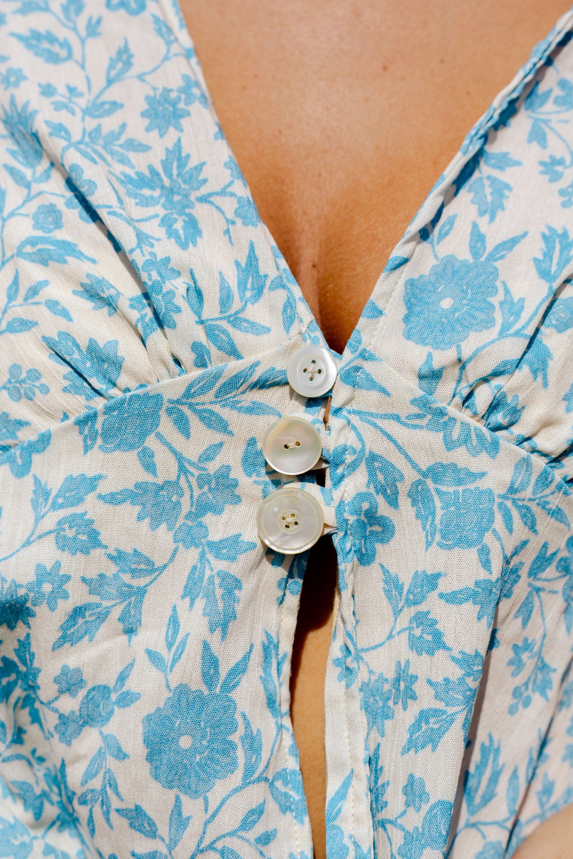 La collection "Hauteurs d'été" est un hommage à la nature, à son rythme et à ses couleurs. Ce chemisier incarne l'engagement de Jaune Parfois Bleu pour une mode plus éthique.