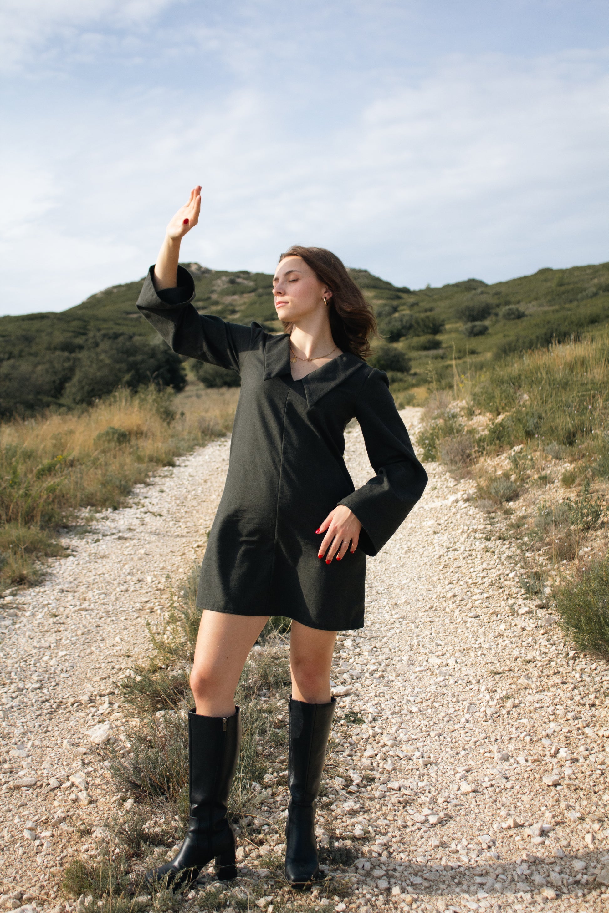 Assert your style with this cotton dress with retro-modern charm! Designed from cotton from dormant stocks, it is part of a responsible fashion approach. This dress is distinguished by its tart-à-la-pelle collar, a vintage touch that is coming back to the forefront, and its slightly puffed sleeves for an elegant and feminine volume.