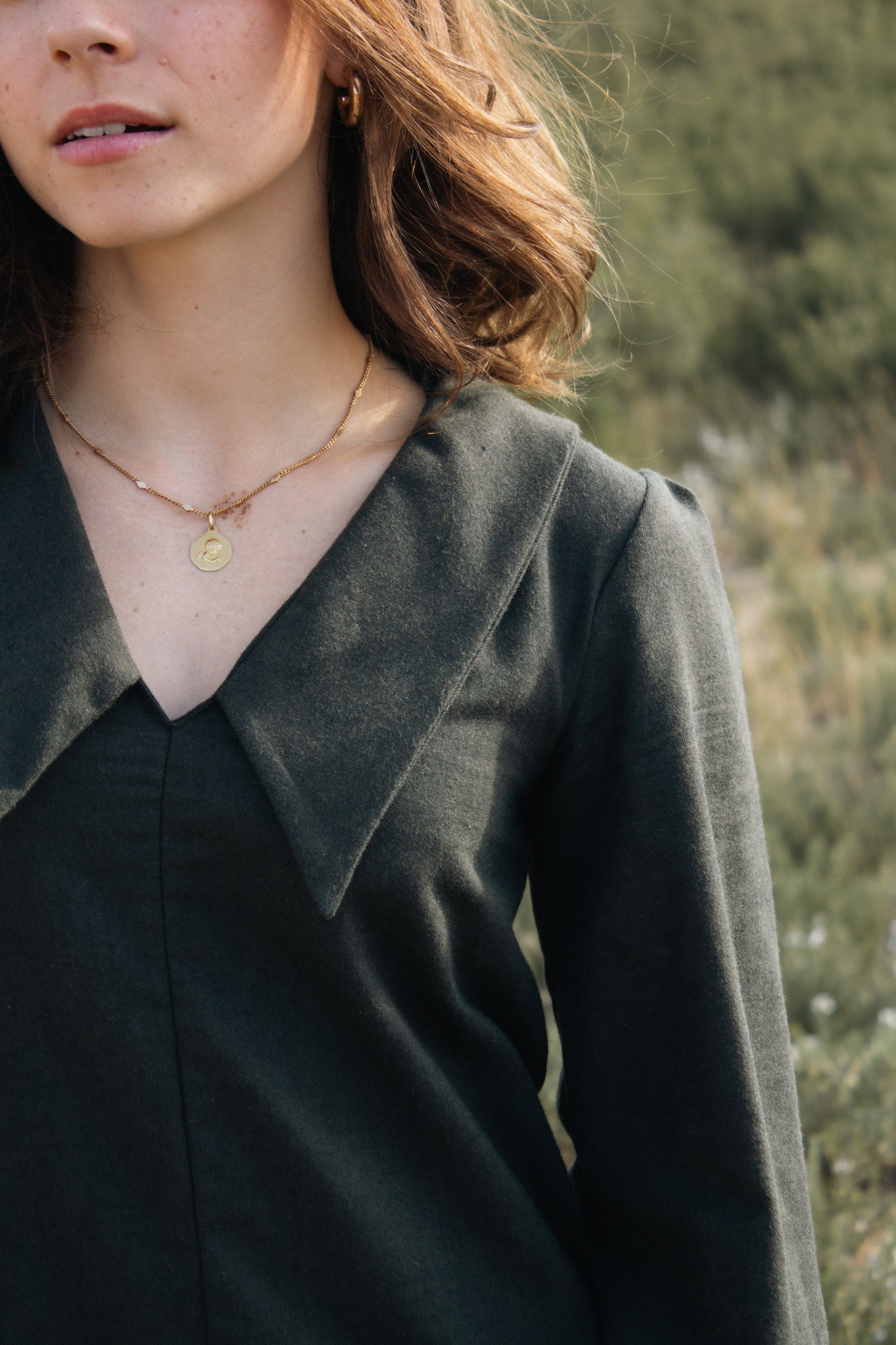 - Collar: Pie-à-la-pelle collar, a retro detail that makes all the difference
