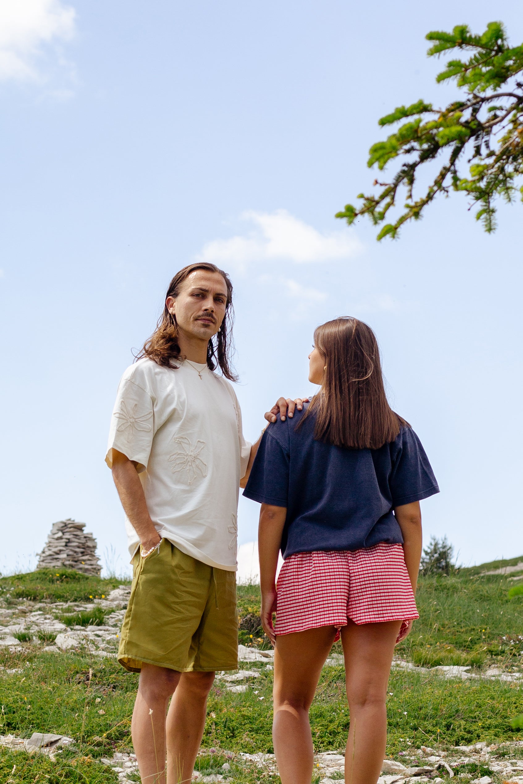 La collection "Hauteurs d'été" est un hommage à la nature, à son rythme et à ses couleurs. Ce short incarne l'engagement de Jaune Parfois Bleu pour une mode plus éthique.